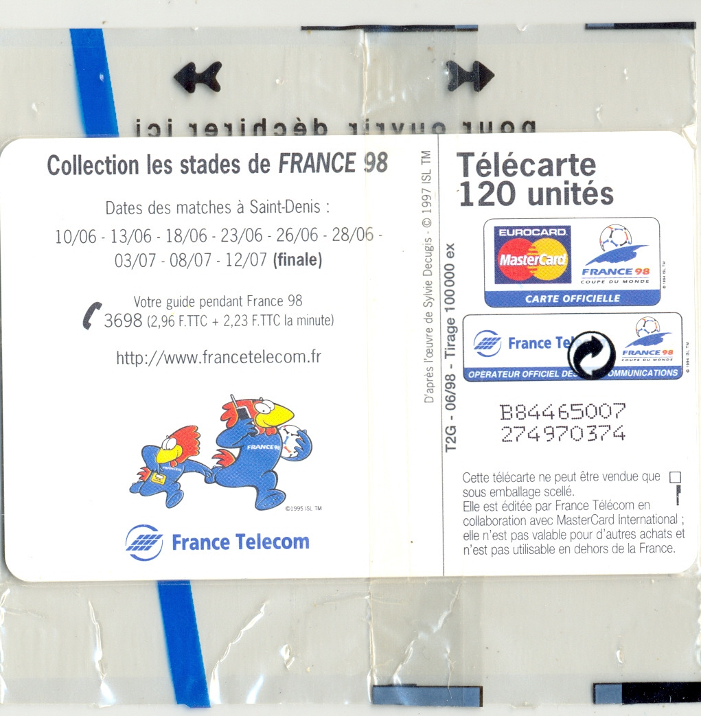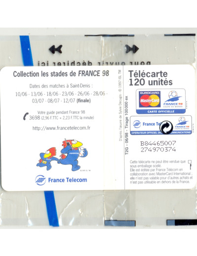 TELECARTE NSB 120 UNITES 06/98 SAINT DENIS COUPE DU MONDE FRANCE 98 F 856