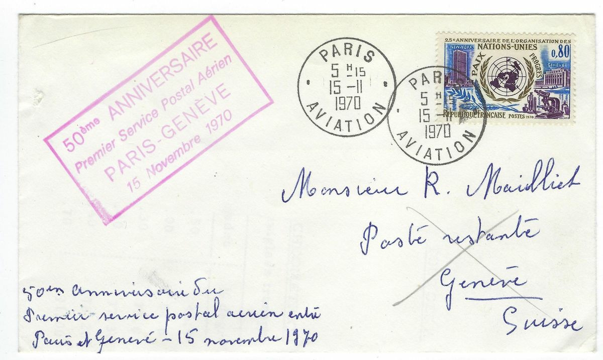 50éme ANNIVERSAIRE PREMIER SERVICE POSTAL AERIEN PARIS GENEVE 15 NOVEMBRE 1970 (15-11-1970)