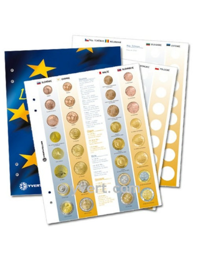 Ce paquet de recharges comprend 1 page de garde, fiches descriptives (descriptif très complet présentant les informations sur chacune des pièces des pays émetteurs ainsi que le visuel de la pièce concernée), recharges(recharges à bandes coulissantes avec onglet pour maintenir les pièces dans les pochettes).