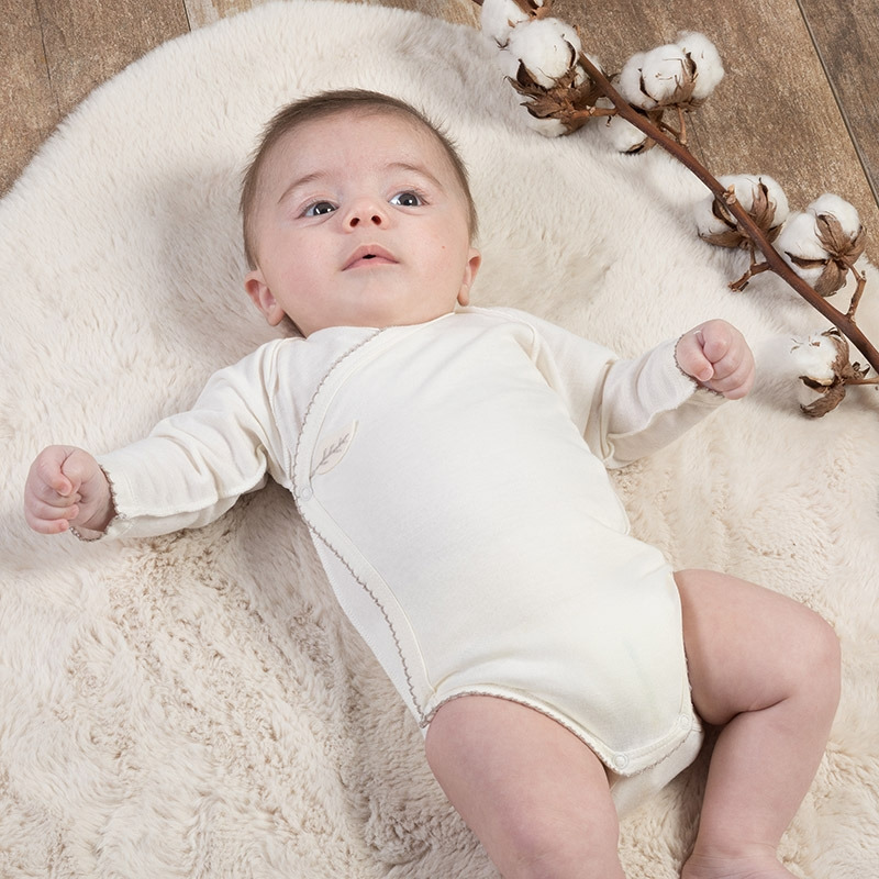 Le body croisé en bambou est un incontournable dans l'armoire de votre petit Amour. La fibre de bambou est antibactérienne, elle calme les démangeaisons, les rougeurs au niveau de la couche. Ce body a les coutures sur l'extérieur, pour ne pas irriter sa peau, ses manches sont élargies, il est très facile à mettre au bébé. Cette fibre de bambou est d'une grande douceur, de plus par sa couleur et la petite feuille brodée il peut être porté aussi bien par une petite fille que par un petit garçon et ce toute l'année.