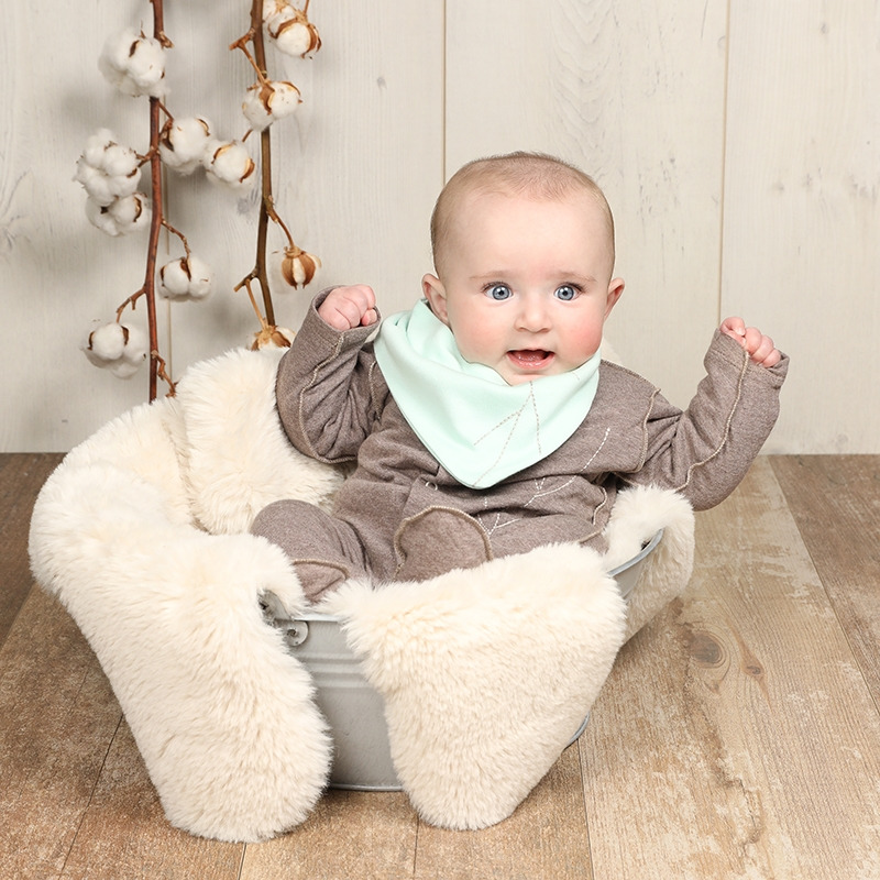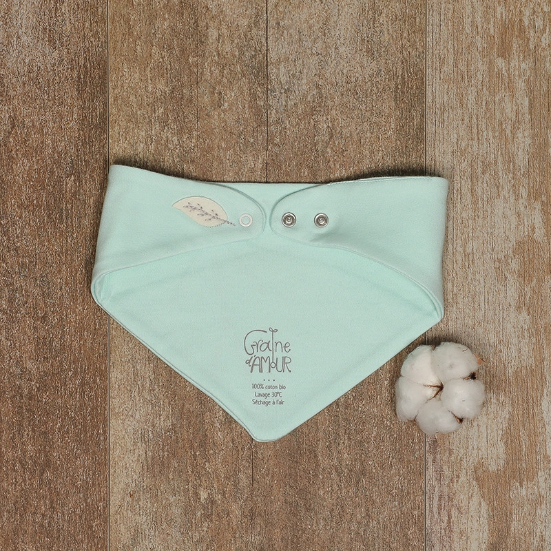 Ce bandana est en interlock 100% coton bio, il est doublé, le montage est en fourreau ce qui signifie qu'il n'y a aucune couture apparente. Il est réversible et en plus réglable par 2 pressions. Ce bandana protège son petit cou lors des sorties il se coordonne avec toute la collection. Un très joli cadeau utile qui suivra votre bébé pendant plusieurs mois.