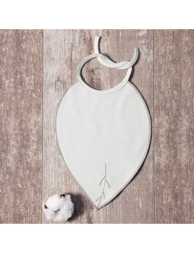 Ce bavoir en forme de feuille, brodé est en maille interlock 100 % coton bio. La maille interlock bio est très douce, idéal pour les premiers jours de bébé. Ce bavoir original se ferme délicatement avec des lacets. Idéal pour un cadeau. Il est proposé en coffret avec un body croisé dans la même matière de la naissance à 9 mois.