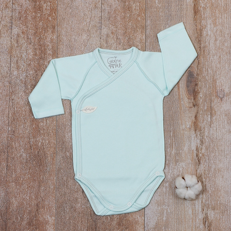 Ce body croisé est spécialement conçu pour le bien-être de votre bébé : toutes les coutures sont à l'extérieur, les manches sont élargies pour un meilleur passage des mains, il n’y a aucune étiquette, la sérigraphie est réalisée sans métaux lourds.