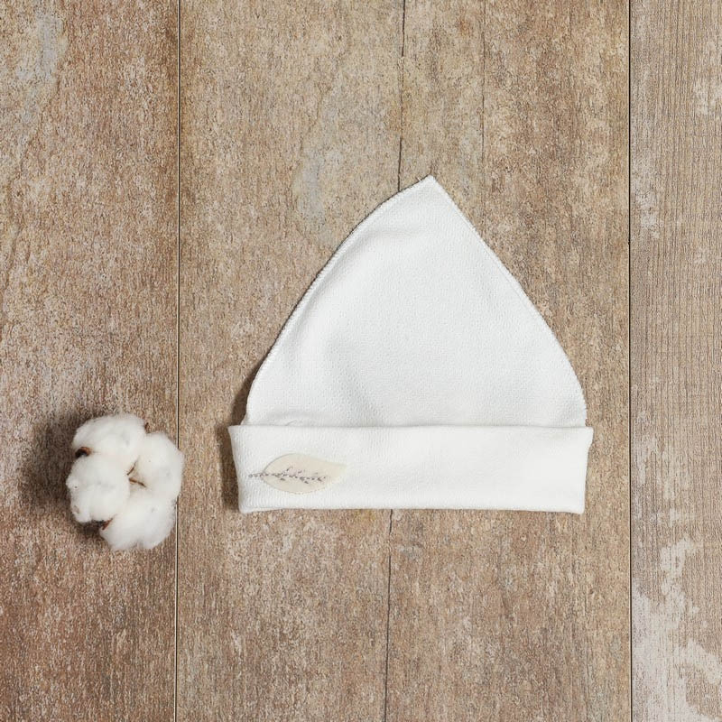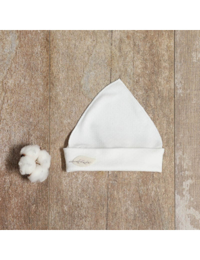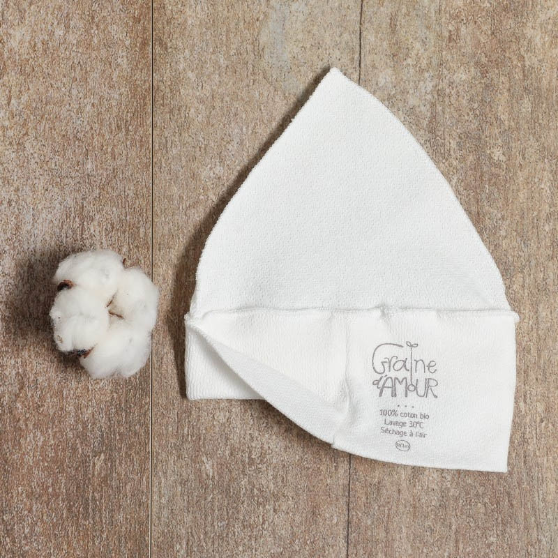 Ce bonnet bio Graine d'amour au style petit lutin convient aussi bien pour une petite fille que pour un petit garçon.
