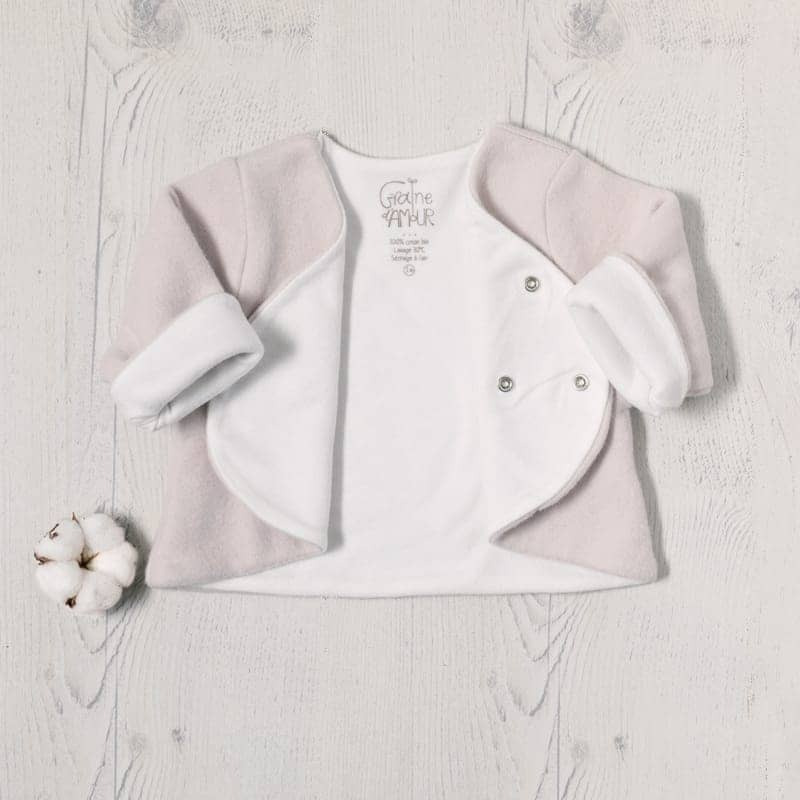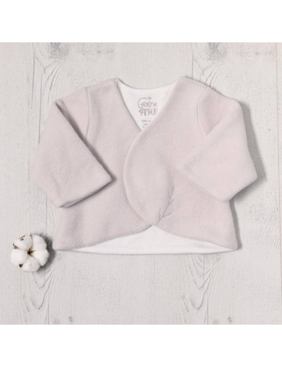 Magnifique brassière en polaire pour bébé en 6 mois et 12 mois, doublée d’une maille interlock épaisse, 100% coton bio, elle protège bébé de l’air frais. Les manches ont été élargies pour faciliter l’habillage. La brassière se ferme par 3 pressions invisibles coté intérieur.