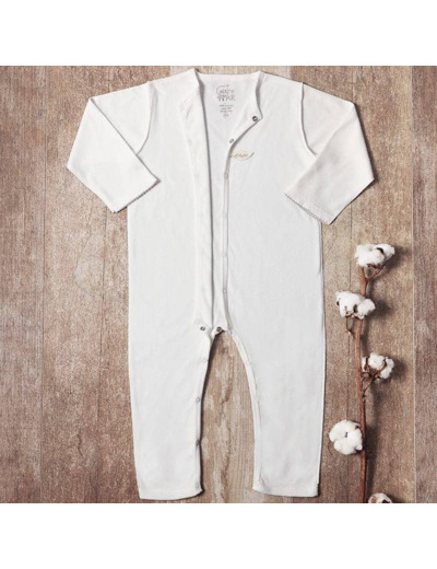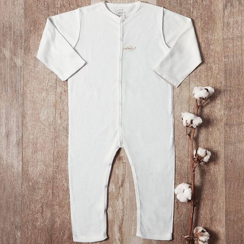 Ce pyjama sans pieds et son bandeau en coton bio apporteront à bébé charme et élégance. Cette matière est très originale par son motif ajouré et très agréable à porter au printemps, en été directement sur sa peau ou en hiver avec un body dans un intérieur chaud. Le pyjama en maille ajourée est conçu pour le bien-être de bébé : toutes les coutures sont à l’extérieur, il n’y a aucune étiquette et la sérigraphie est réalisée sans métaux lourds.