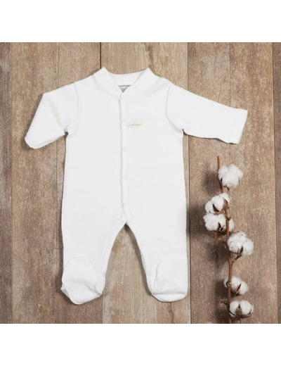 Ce pyjama polaire écru et sa jolie petite broderie ‘feuille’ couleur taupe au niveau de la poitrine, convient aussi bien pour une petite fille que pour un petit garçon.