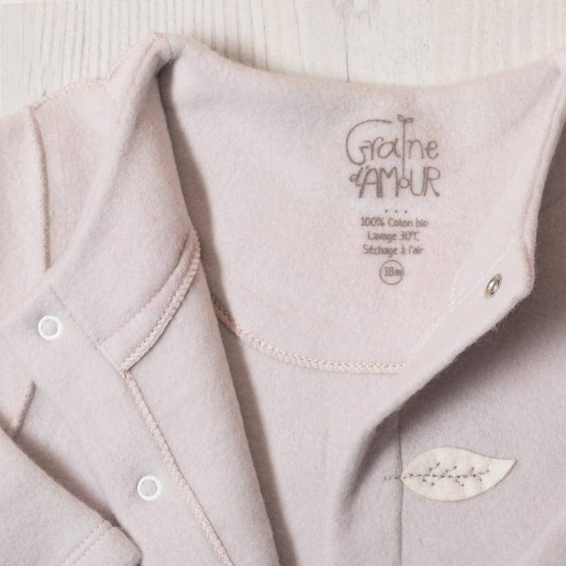 Le pyjama polaire est conçu pour le bien-être de bébé : toutes les coutures du pyjama polaire sont à l’extérieur, il n’y a aucune étiquette et la sérigraphie est réalisée sans métaux lourds.