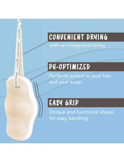 Notre après-shampoing solide Shake Your Coconuts est formulé aux protéines de blé et à la noix de coco pour des cheveux forts, souples et brillants. Grâce à notre formule pressée à froid, vos cheveux garderont toute la journée le parfum exotique de la noix de coco ! Nos après shampoings solides Foamie soignent efficacement les cheveux à long terme grâce à notre formule optimisée (pH 5,5) qui rééquilibre les cheveux en l'hydratant en profondeur et qui referme soigneusement les cuticules (la couche supérieure du cheveu). Notre promesse : 0% plastique. 0% PEG. 0% d'huiles minérales. 0% silicone. 0% lilial et 0% savon. En n'utilisant pas de plastique, Foamie est plus respectueux de l'environnement que les gels douche classiques dans des bouteilles en plastique. Vous économisez environ 2 bouteilles en plastique avec chaque produit Foamie et vous contribuerez à la préservation de l'environnement. En collaboration avec l'organisation " The Ocean Cleanup, nous collectons les déchets plastiques et vous pouvez nous aider dès maintenant. Pour chaque mousse que nous vendons, nous gardons les mers un peu plus propres.