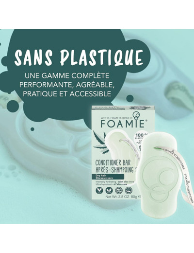Foamie Après-Shampoing solide pour cheveux secs à l'aloe vera qui hydrate intensément les cheveux, 100% vegan, sans plastique et sans sulfates 80g Aloe Vera pour Cheveux Secs