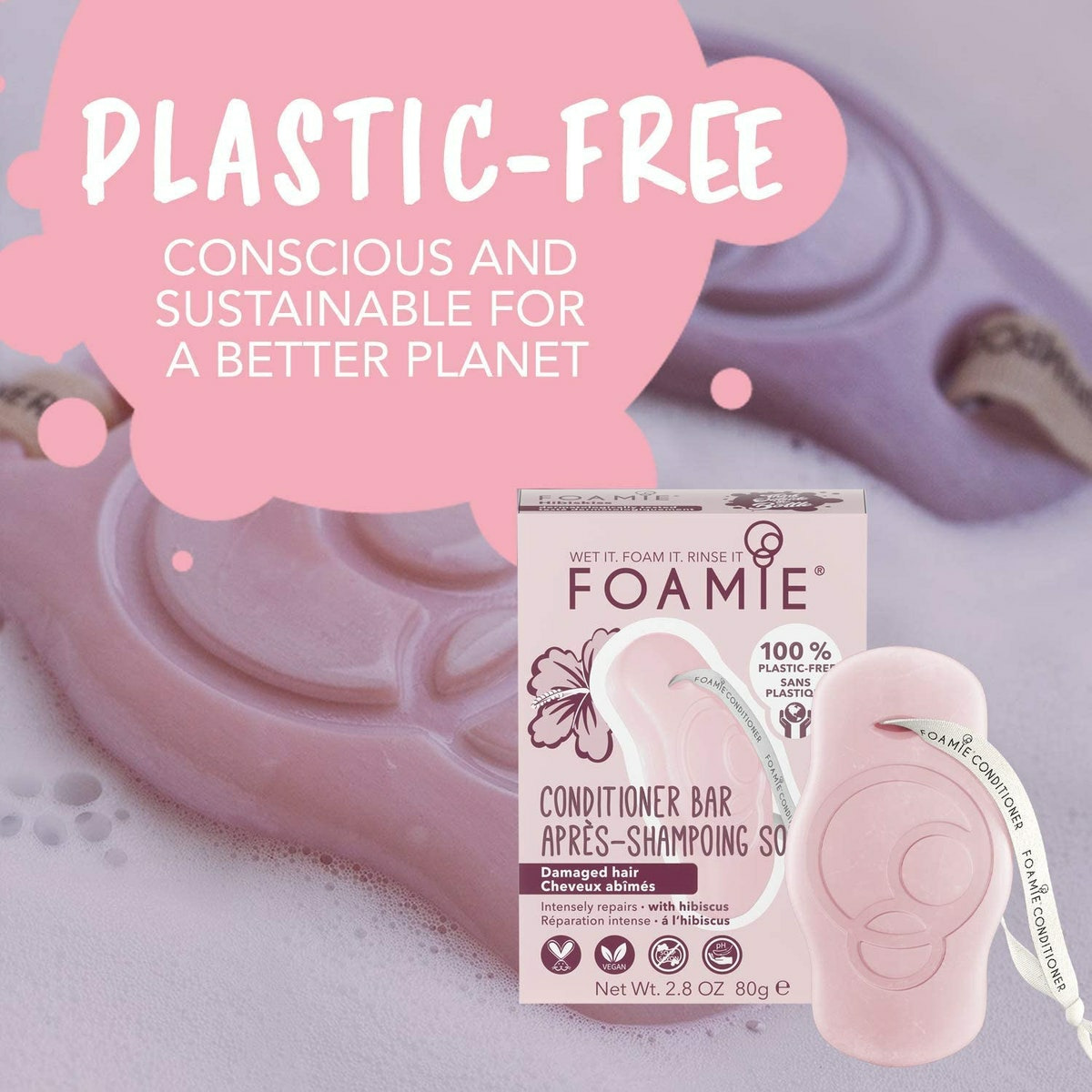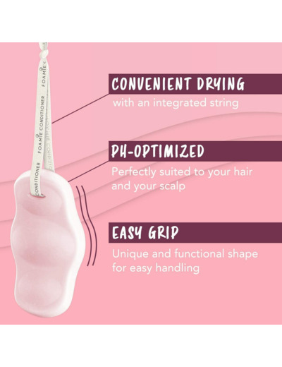 L'élégant après-shampooing solide Hibiskiss apporte force, élasticité et répare les dommages subis par les cheveux décolorés ou colorés. Grâce à notre formule pressée à froid, vos cheveux garderont toute la journée le doux parfum de l'hibiscus. Nos après shampoings solides Foamie soignent efficacement les cheveux à long terme grâce à notre formule optimisée (pH 5,5) qui rééquilibre les cheveux en l'hydratant en profondeur et qui referme soigneusement les cuticules (la couche supérieure du cheveu). et rééquilibre les cheveux en l'hydratant en profondeur. Notre promesse : 0% plastique. 0% PEG. 0% d'huiles minérales. 0% silicone. 0% lilial et 0% savon. En n'utilisant pas de plastique, Foamie est plus respectueux de l'environnement que les gels douche classiques dans des bouteilles en plastique. Vous économisez environ 2 bouteilles en plastique avec chaque produit d'entretien solide et protégez ainsi un peu l'environnement. En collaboration avec l'organisation " The Ocean Cleanup, nous collectons les déchets plastiques et vous pouvez nous aider dès maintenant. Pour chaque mousse que nous vendons, nous gardons les mers un peu plus propres.