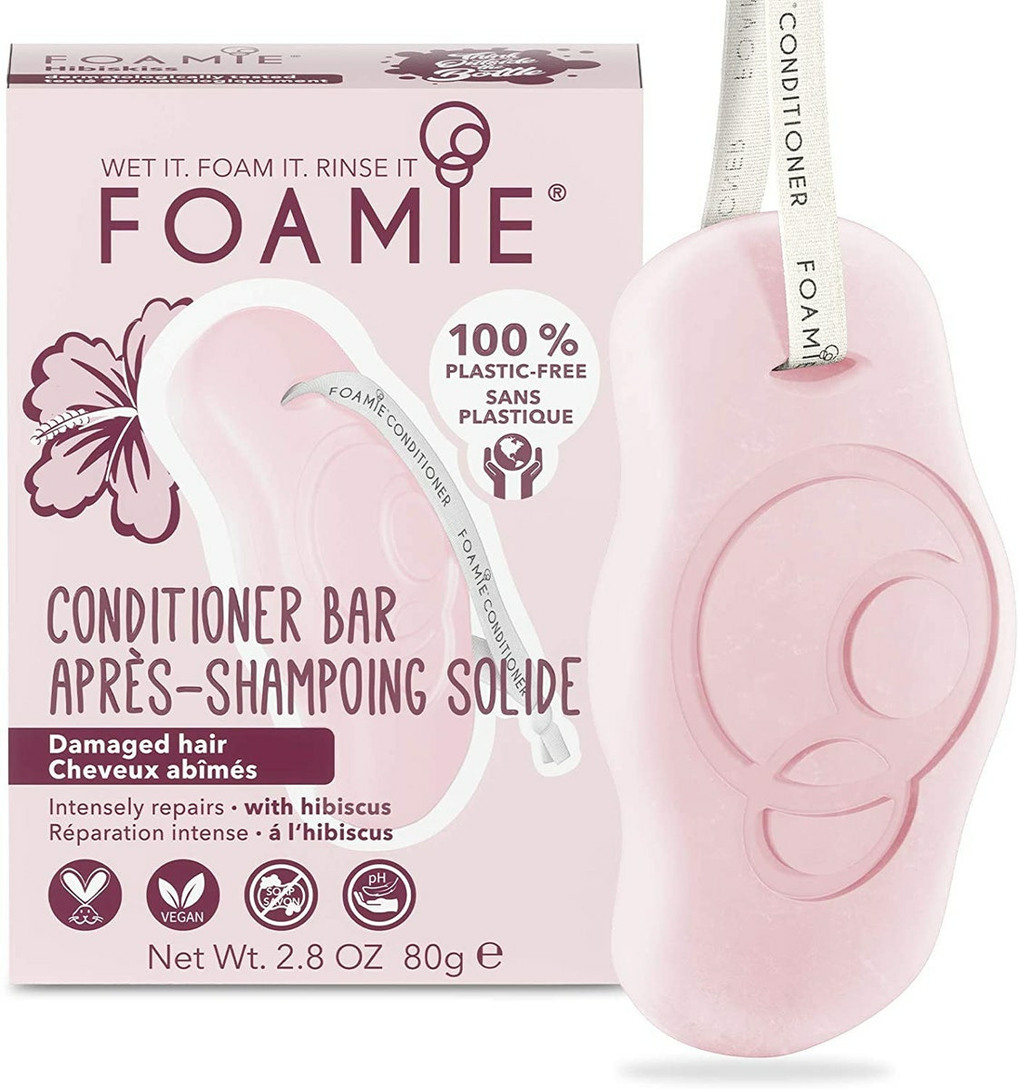 Foamie Après-Shampoing Solide Pour Cheveux Secs Et Abîmés À L'hibiscus Qui Répare Les Cheveux, Démêlant Cheveux 100% Vegan Et Sans Plastique 80G Hibiscus Pour Cheveux Abîmés