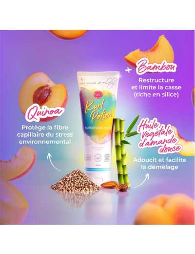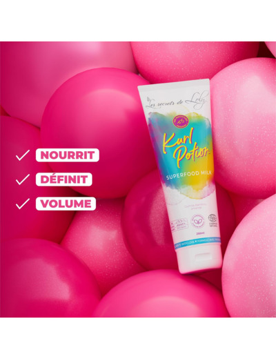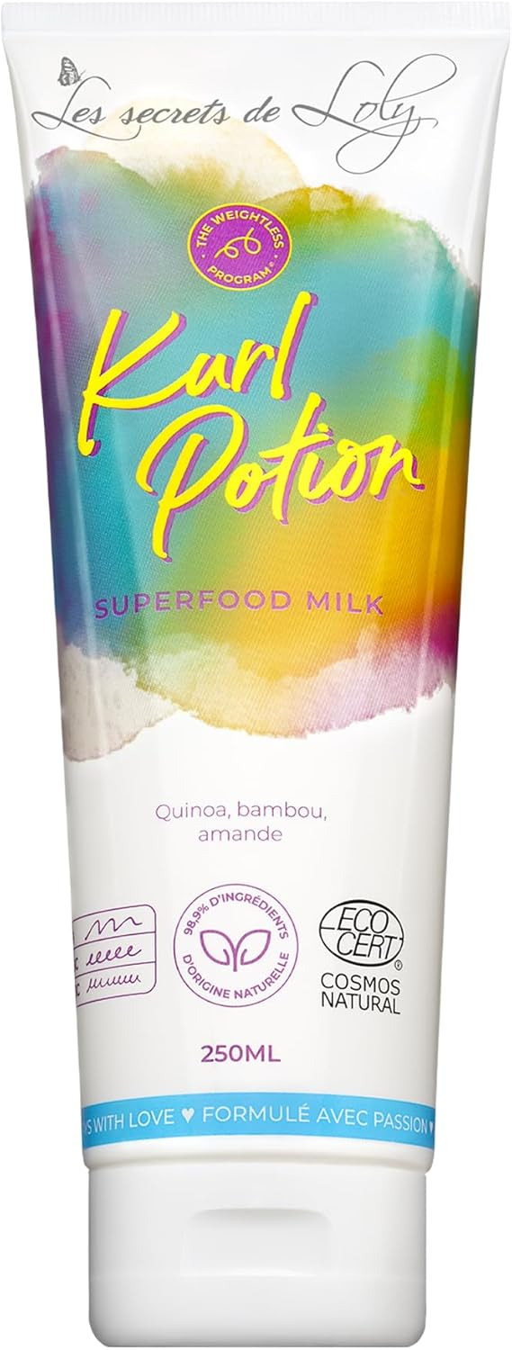 Kurl Potion Les Secrets de Loly est bien plus qu’un simple soin sans rinçage pour femmes et hommes : c’est un produit ultra efficace qui hydrate et définit vos cheveux texturés. Ideal pour les cheveux ondulés ou fins. Sa formule naturelle à 98,9% est spécialement conçue pour hydrater, définir et restructurer les boucles sans les alourdir. Grâce à son complexe unique de 17 acides aminés, il renforce la fibre capillaire, améliore l’élasticité et limite la casse. Vous apprécierez l’huile d’amande douce, le quinoa, le bambou et l’olive qui combinent les effets naturels pour assurer l’efficacité de notre leave-in revitalisant et hydratant. Sa texture légère pénètre rapidement et laisse les boucles souples, définies et éclatantes de santé. Utilisé en duo avec la gelée Boost Curl, il forme un combo parfait pour une routine capillaire naturelle et efficace. Idéal pour les cheveux fins et pour les cheveux ondulés . Sans rinçage, sans silicone, sans sulfate, il respecte la nature du cheveu et de l’environnement. UTILISATION : Appliquer une à deux noisettes sur cheveux humides, des racines aux pointes, section par section. Ne pas rincer. COMPOSITION : AQUA, CETEARYL ALCOHOL, PCA GLYCERYL OLEATE, PRUNUSAMYGDALUS DULCIS OIL***, HYDROGENATED ETHYLHEXYL OLIVATE, BETAINE, GLYCERIN, DISTEAROYLETHYL DIMONIUM CHLORIDE, BAMBUSA VULGARIS EXTRACT, HYDROLYZED QUINOA, HYDROGENATED OLIVE OIL UNSAPONIFIABLES, GUAR HYDROXYPROPYLTRIMONIUMCHLORIDE, PARFUM, BENZYL ALCOHOL, DEHYDROACETIC ACID, CITRIC ACID, SODIUM BENZOATE, POTASSIUM SORBATE, SODIUM HYDROXIDE*, BENZYL SALICYLATE**, CITRAL**, CITRONELLOL**, GERANIOL**, LIMONENE**, LINALOOL**.*Ajusteur de pH** Présent dans le parfum*** Ingrédients issus de l’agriculture biologique INGRÉDIENTS AQUA, CETEARYL ALCOHOL, PCA GLYCERYL OLEATE, PRUNUS AMYGDALUS DULCIS OIL***, HYDROGENATED ETHYLHEXYL OLIVATE, BETAINE, GLYCERIN, DISTEAROYLETHYL DIMONIUM CHLORIDE, BAMBUSA VULGARIS EXTRACT, HYDROLYZED QUINOA, HYDROGENATED OLIVE OIL UNSAPONIFIABLES, GUAR HYDROXYPROPYLTRIMONIUM CHLORIDE, PARFUM, BENZYL ALCOHOL, DEHYDROACETIC ACID, CITRIC ACID, SODIUM BENZOATE, POTASSIUM SORBATE, SODIUM HYDROXIDE*, BENZYL SALICYLATE**, CITRAL**, CITRONELLOL**, GERANIOL**, LIMONENE**, LINALOOL**. *Ajusteur de pH ** Présent dans le parfum *** Ingrédients issus de l’agriculture biologique MODE D'EMPLOI Après le lavage et le conditionnement, appliquez une ou deux noisettes sur les cheveux humides uniformément des racines aux pointes. Ne pas rincer. Pour créer le mélange parfait d'hydratation et de tenue adaptée à votre type de cheveux, appliquez le Kurl Potion avec notre gelée Boost Curl. Diffusez ou séchez à l’air libre. AVERTISSEMENT DE SÛRETÉ Après le lavage et le conditionnement, appliquez une ou deux noisettes sur les cheveux humides uniformément des racines aux pointes. Ne pas rincer. Pour créer le mélange parfait d'hydratation et de tenue adaptée à votre type de cheveux, appliquez le Kurl Potion avec notre gelée Boost Curl. Diffusez ou séchez à l’air libre.