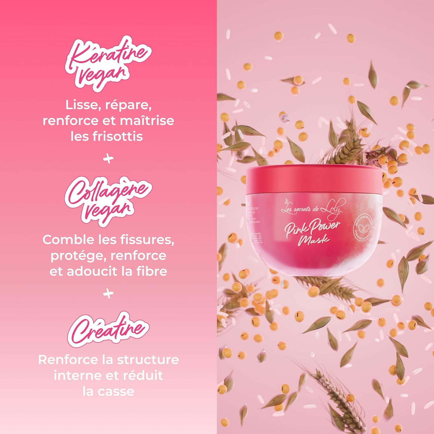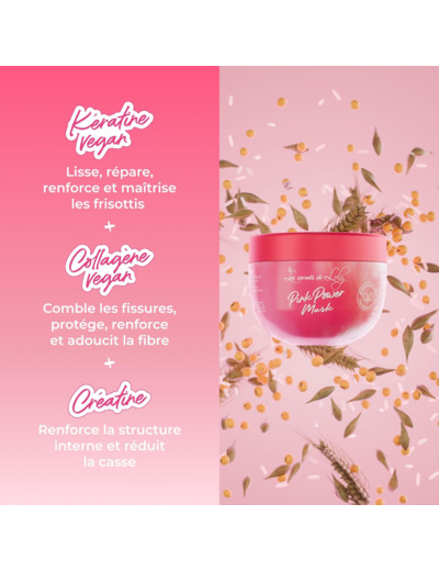 Pink power mask, soin restructurant ultra proteiné au collagène vegan, kératine vegane et créatine , 300ml