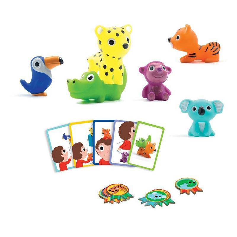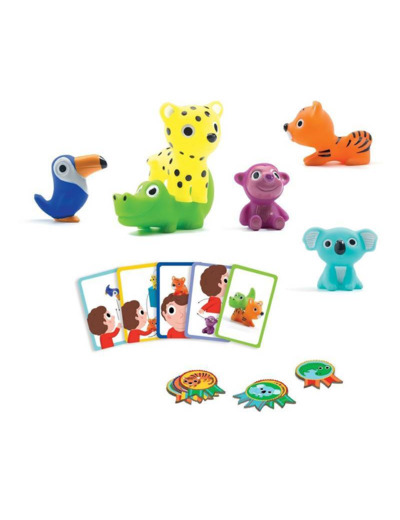 DJECO Little Action - Jeux de Société pour Enfants, 2 à 5 Ans- 6 Figurines Animaux, 20 Cartes Défi, 12 Médailles - Développe Manipulation et Adresse - Pièces Durables et Colorées - 2 à 4 Joueurs-Jeux éducatifs unisexes pour enfants de la marque Djeco. Modèle : Jeu Little Action. Référence : DJ08557. AVERTISSEMENT DE SÛRETÉ Ne convient pas aux enfants de moins de 3 ans. À utiliser sous la surveillance d'un adulte. Contient un jouet. La surveillance d'un adulte est recommandée