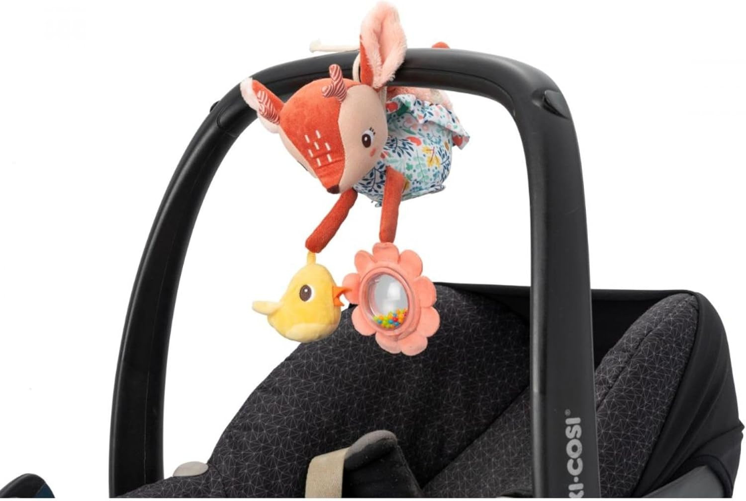 Avec Stella Acti-nomade, bébé est prêt pour de nouvelles aventures à chaque sortie ! Ce jouet d’éveil multi-activités est conçu pour divertir bébé en stimulant ses sens. Facile à accrocher à la poussette ou au siège auto, Stella le faon accompagne bébé lors de toutes ses balades. Ce jouet propose des textures à toucher, des sons amusants à découvrir et des formes à manipuler, parfaits pour développer la motricité fine et éveiller les sens. Idéale dès la naissance, Stella Acti-nomade se transporte partout et transforme chaque trajet en une expérience ludique et sensorielle. Fabriquée avec des matériaux doux et sécurisés, elle garantit à bébé un jeu interactif, confortable et sûr. Un compagnon indispensable pour des moments de découvertes et de plaisir à chaque aventure, que ce soit à la maison ou en balade ! AVERTISSEMENT DE SÛRETÉ Aucun avertissement applicable