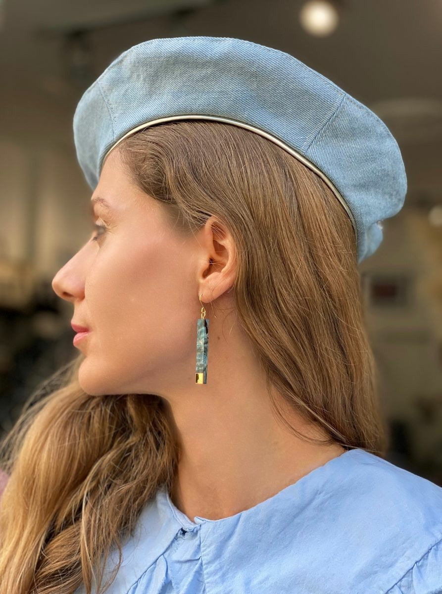sublimes pendantes en loupe de marronnier teintées en bleu.