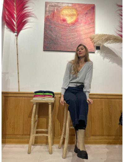 Gilet italien tout doux forme col V avec 5 boutons.