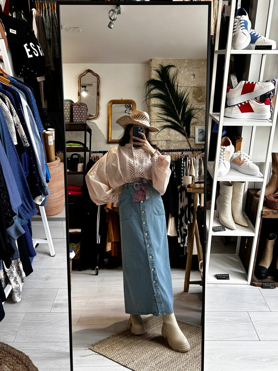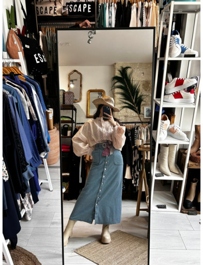 Craquez pour la jupe Jean coton tendance de l’année, légère et toute boutonnée, vous êtes parée pour les balades de cet été.