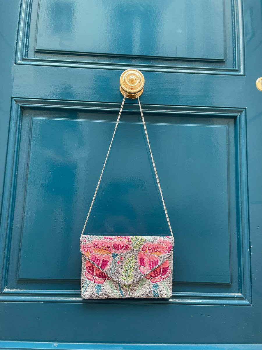 Pochette sac aux teintes pastel idéale pour les beaux jours et/ou soirées.
