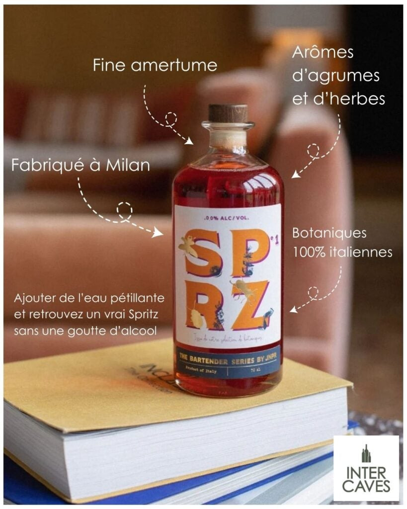 Orange douce, orange amère, et mandarine. SPRZ n°1 intègre la partie vineuse traditionnellement apportée par le Prosecco. Ici, il suffit simplement d’ajouter de l’eau gazeuse bien pétillante pour retrouver les saveurs du Spritz.