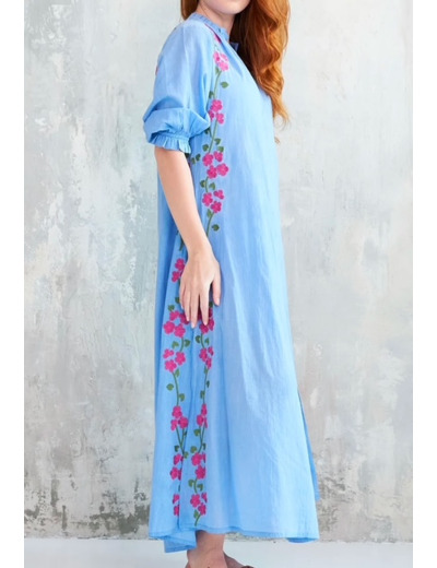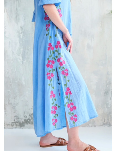 Broderies fleurs sur toute la longueur dos et face des deux cotés