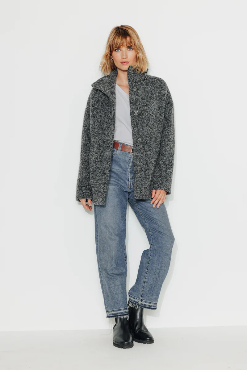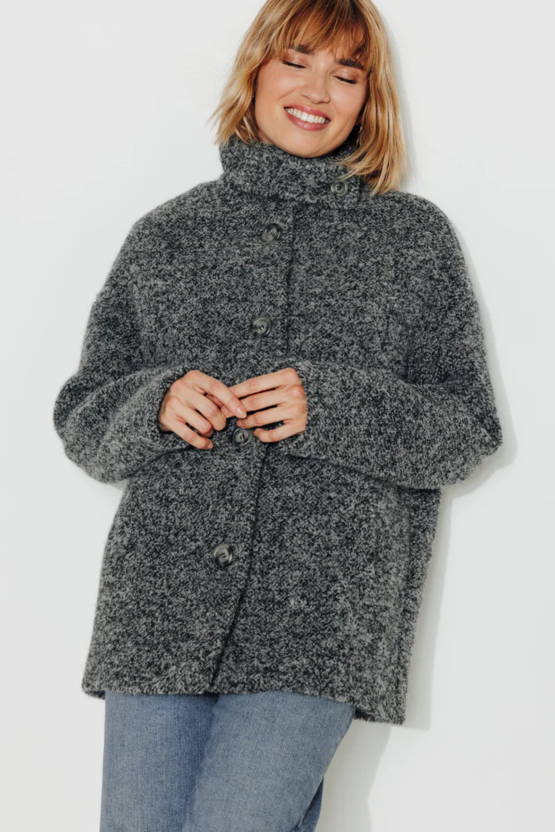 Découvrez le Manteau Trench and Coat, l'alliance parfaite de l'élégance italienne et du confort hivernal. Conçu en tweed épais alliant laine vierge et alpaga noir, ce manteau court Somain est l'élément incontournable de votre garde-robe. Avec son col montant, il offre une touche sophistiquée tout en garantissant chaleur et style, que vous le portiez ouvert ou fermé.