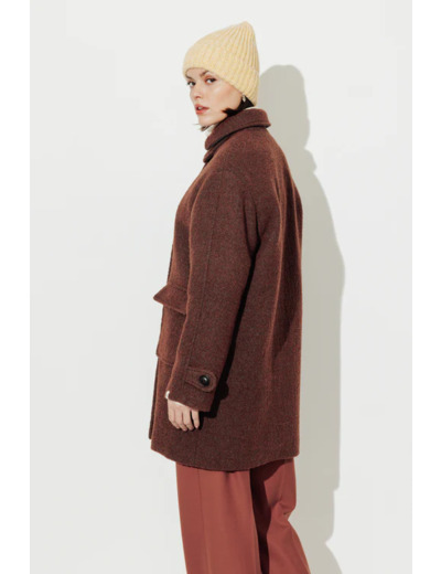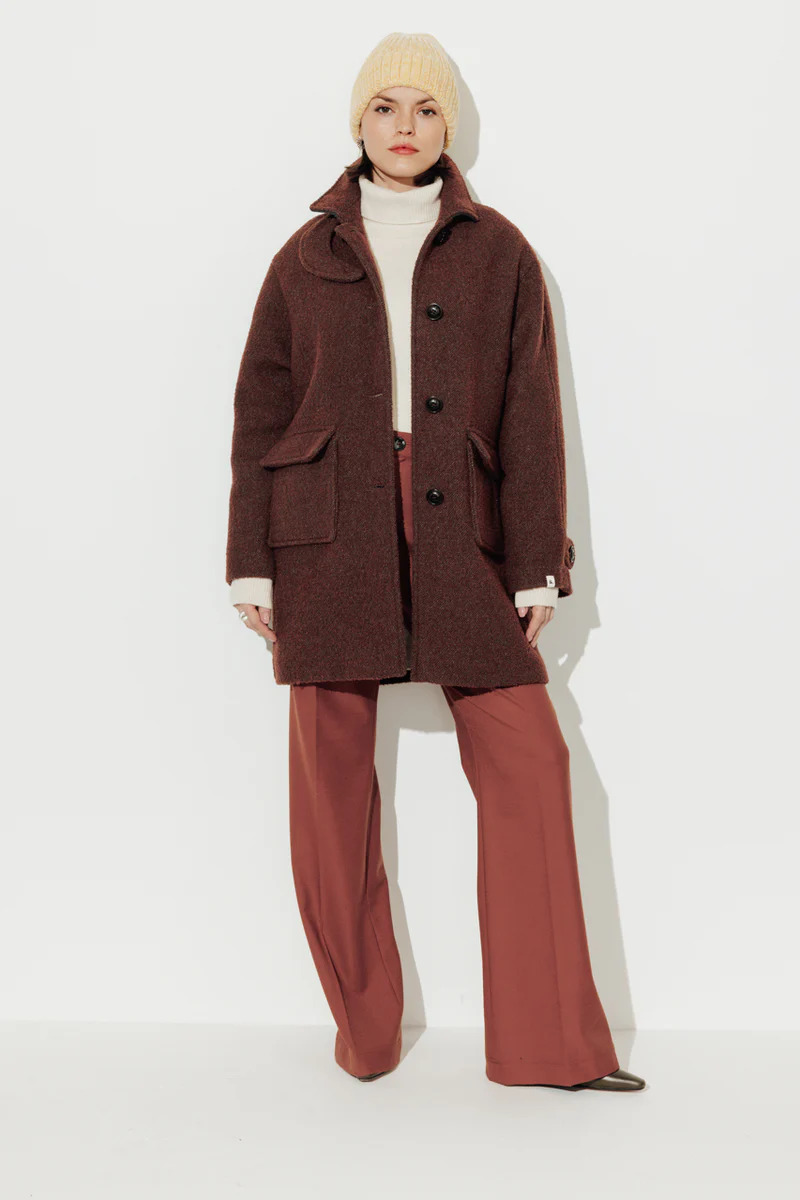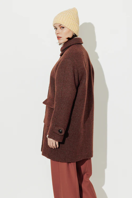 Découvrez le manteau oversize de la marque Trench and Coat, conçu pour allier confort et style. Fabriqué en Italie, ce manteau se distingue par sa teinte marron chaleureuse qui illuminera toutes vos tenues. Sa douceur en bouclette crée une sensation agréable sur la peau, tout en étant idéal pour les journées fraîches.