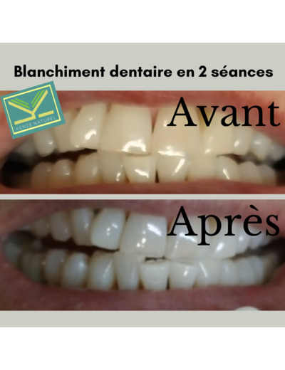 La prestation de blanchiment dentaire est faite sur 2 séances de 40min chacune, avec un intervalle minimum de 24h. Préconisé une fois par an maximum. La séance se fait en détente absolue avec de la luminothérapie en compagnie.