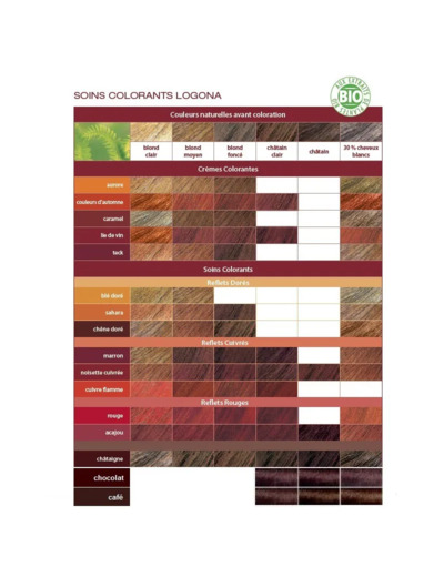 -Un soin post-coloration inclus dans chaque boite 100% végétales, les colorations Logona illuminent et nourrissent vos cheveux !