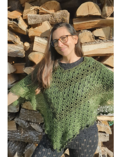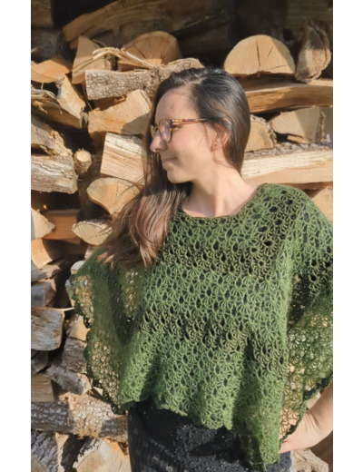 Ce poncho tricotĂ© Ă la main est une piĂšce unique mĂȘlant douceur et finesse.