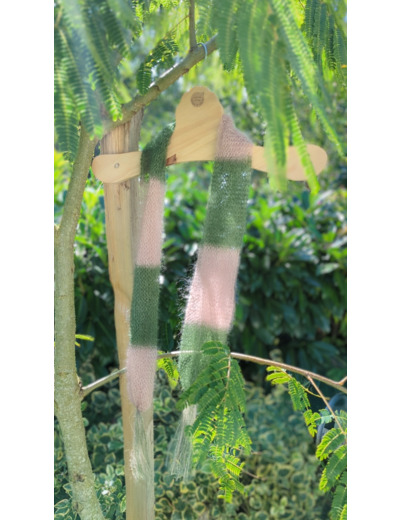 Foulard PLUME à pompons - kaki + rose poudré