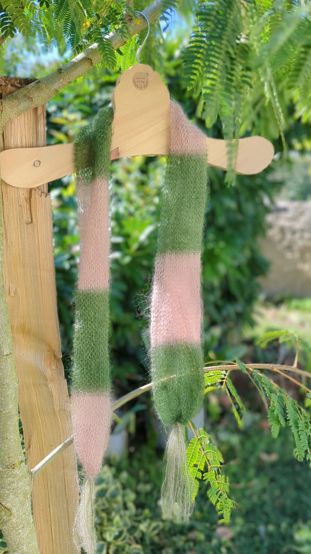 Foulard à pompons PLUME tricotés à la ferme.