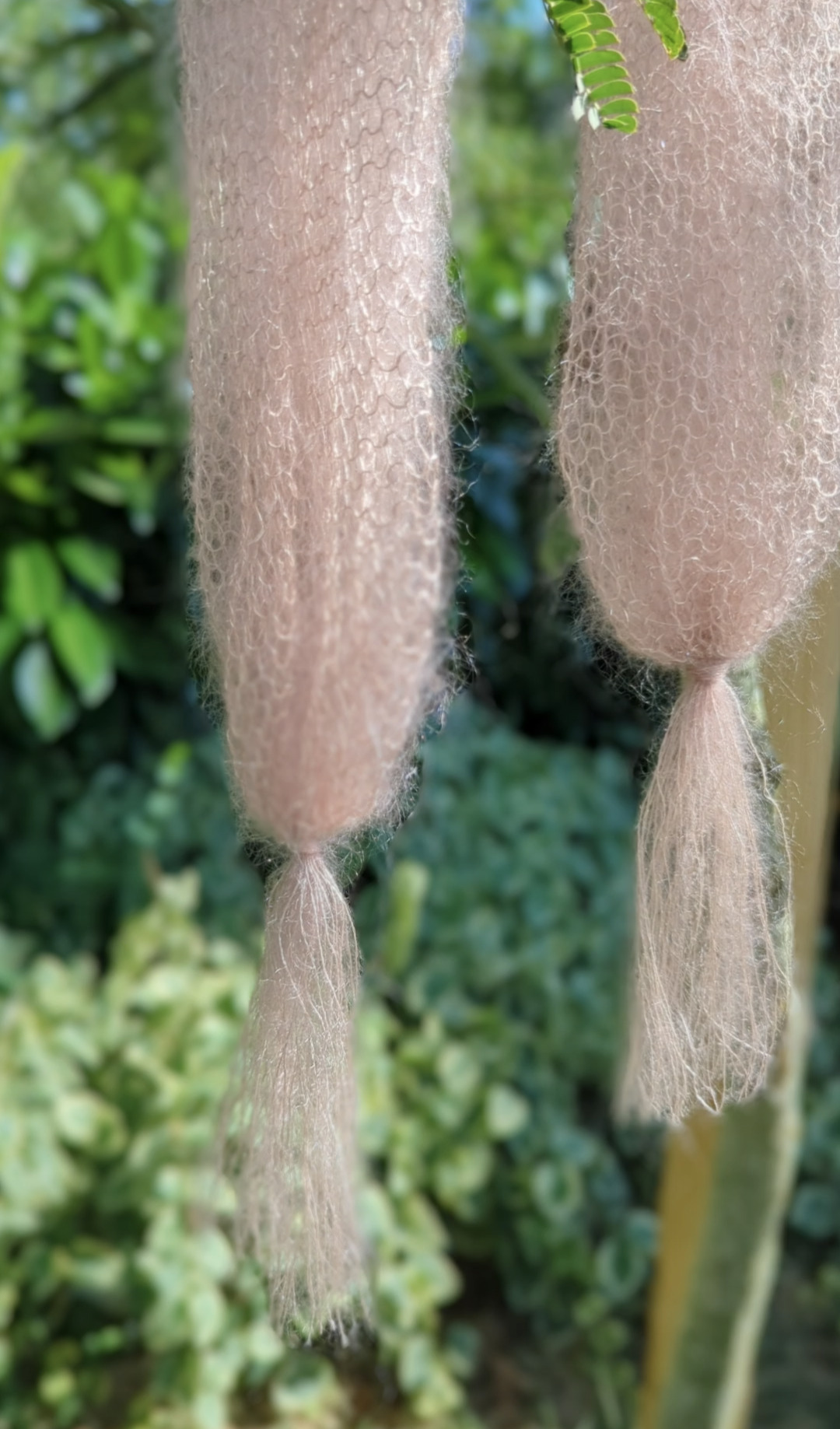 Foulard à pompons PLUME tricotés à la ferme.