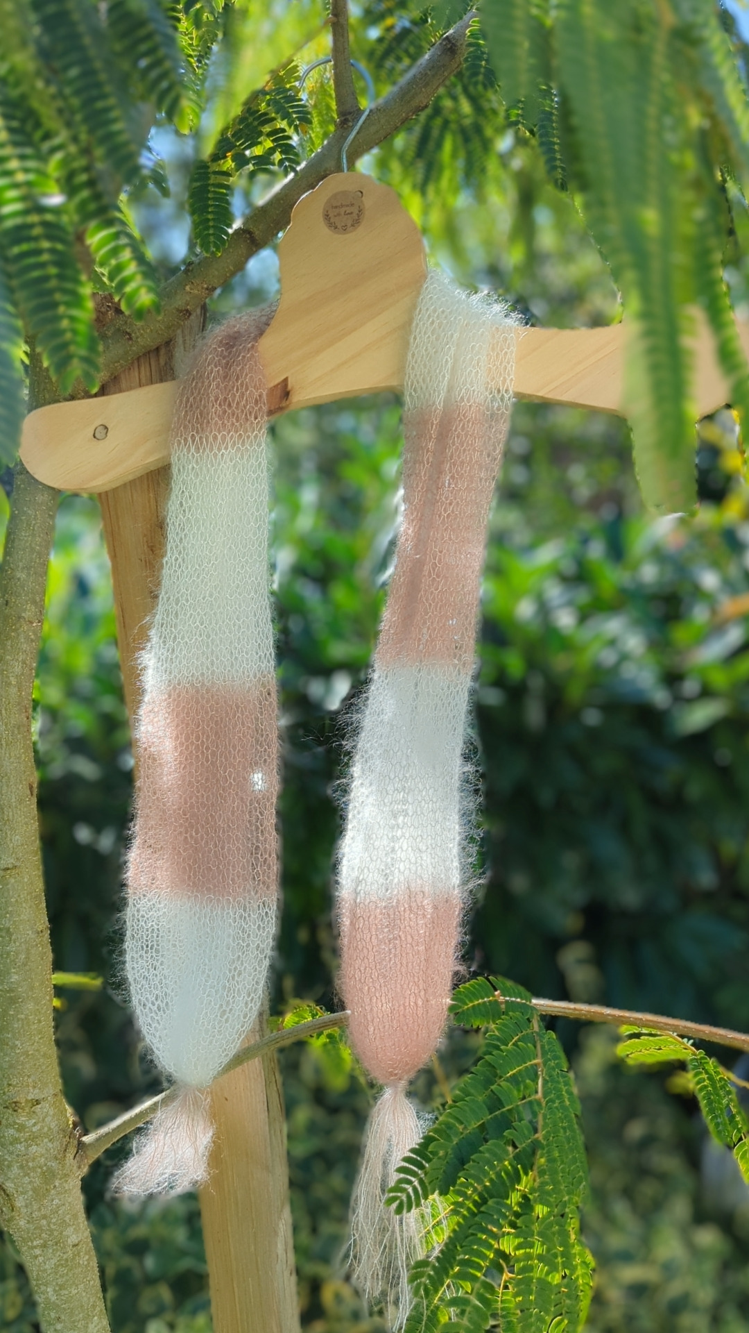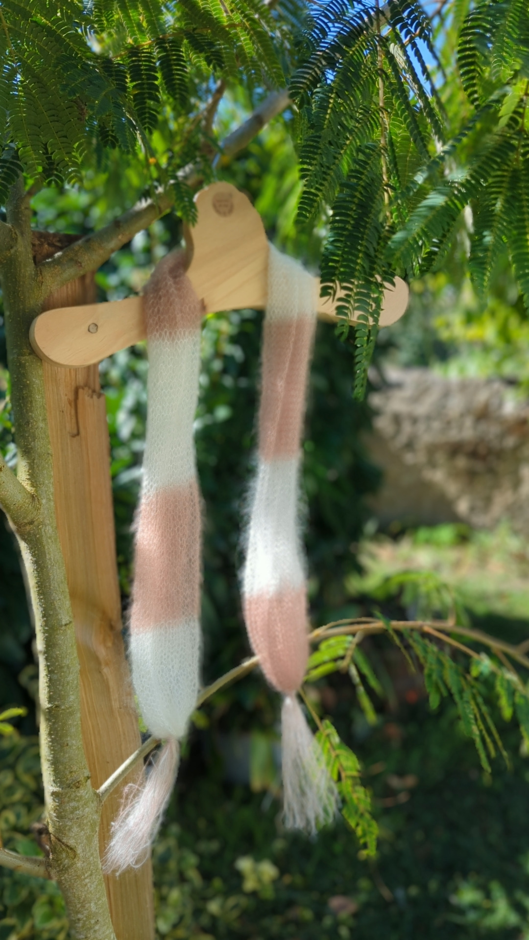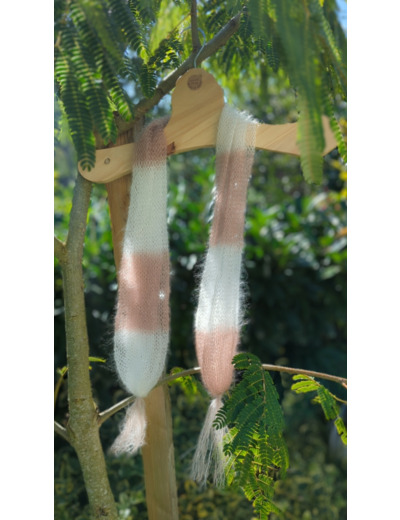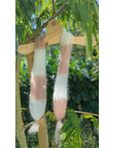 Foulard à pompons PLUME tricotés à la ferme.