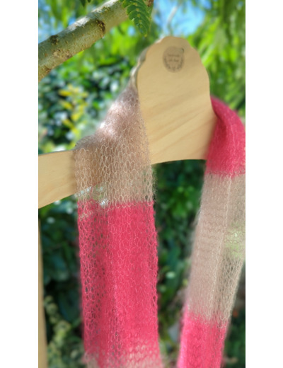 Foulard PLUME à pompons - rose poudré + fuchsia