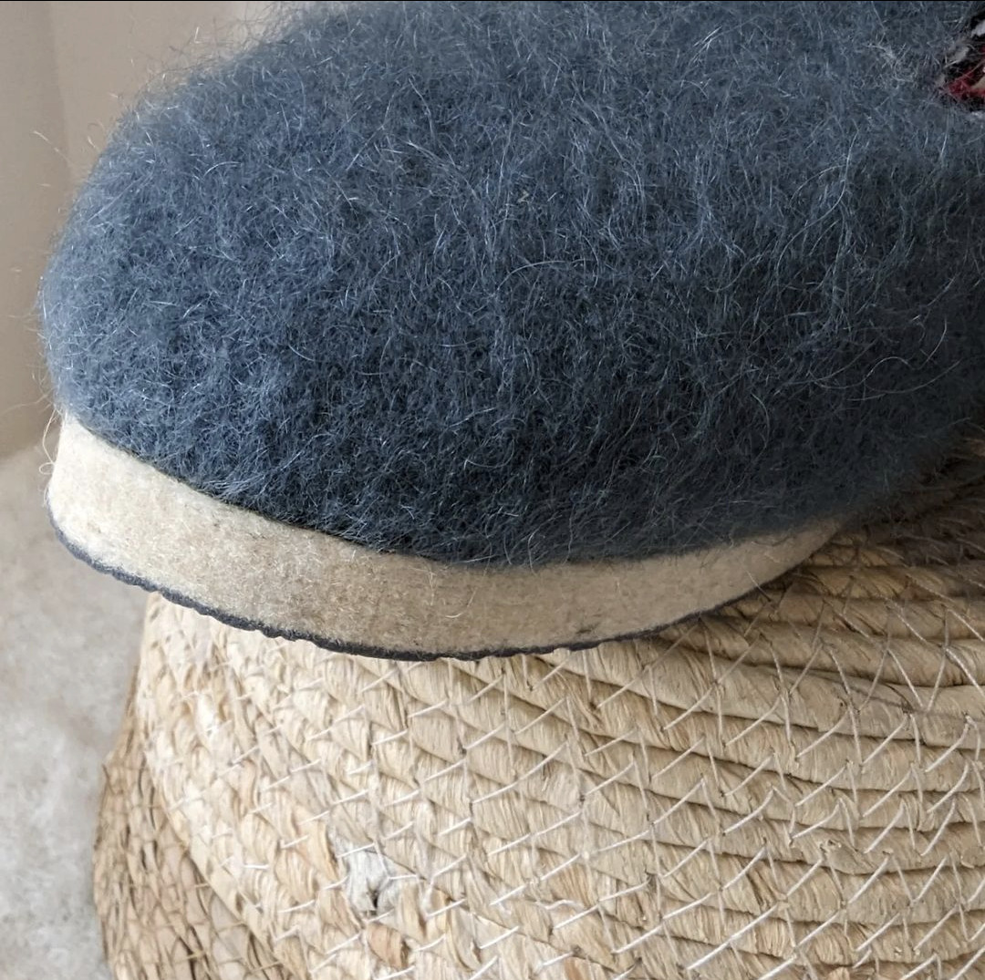 Ces pantoufles, réalisées avec la laine de mes chèvres angora, sont douces et confortables.