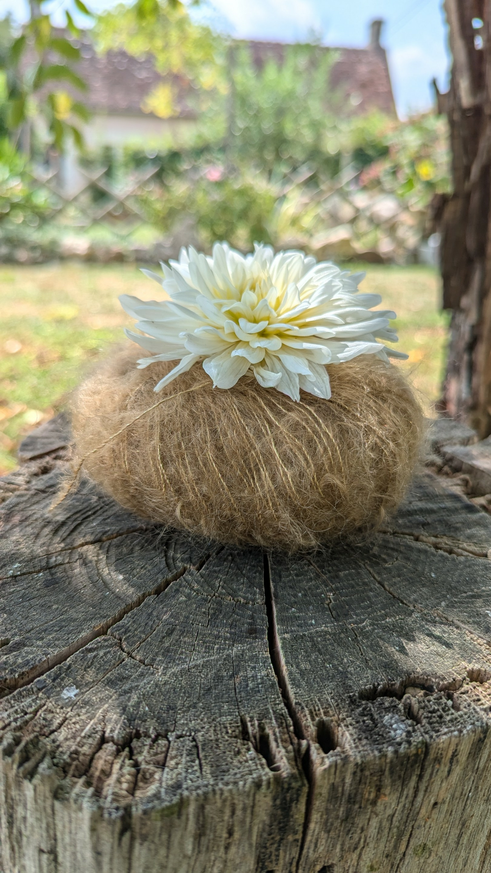 Entouré de son petit troupeau de chèvres angora, Juliette vous propose des produits d'excellente qualité en laine mohair; pelotes, vêtements, accessoires.