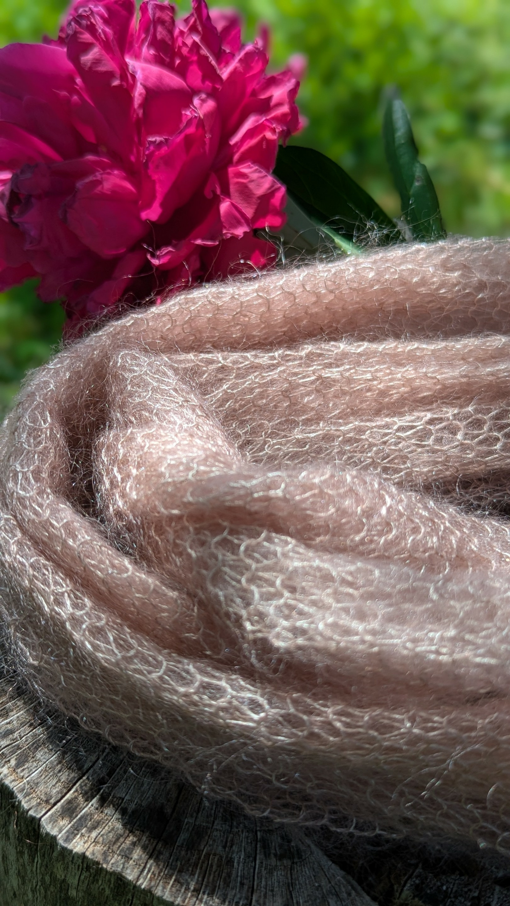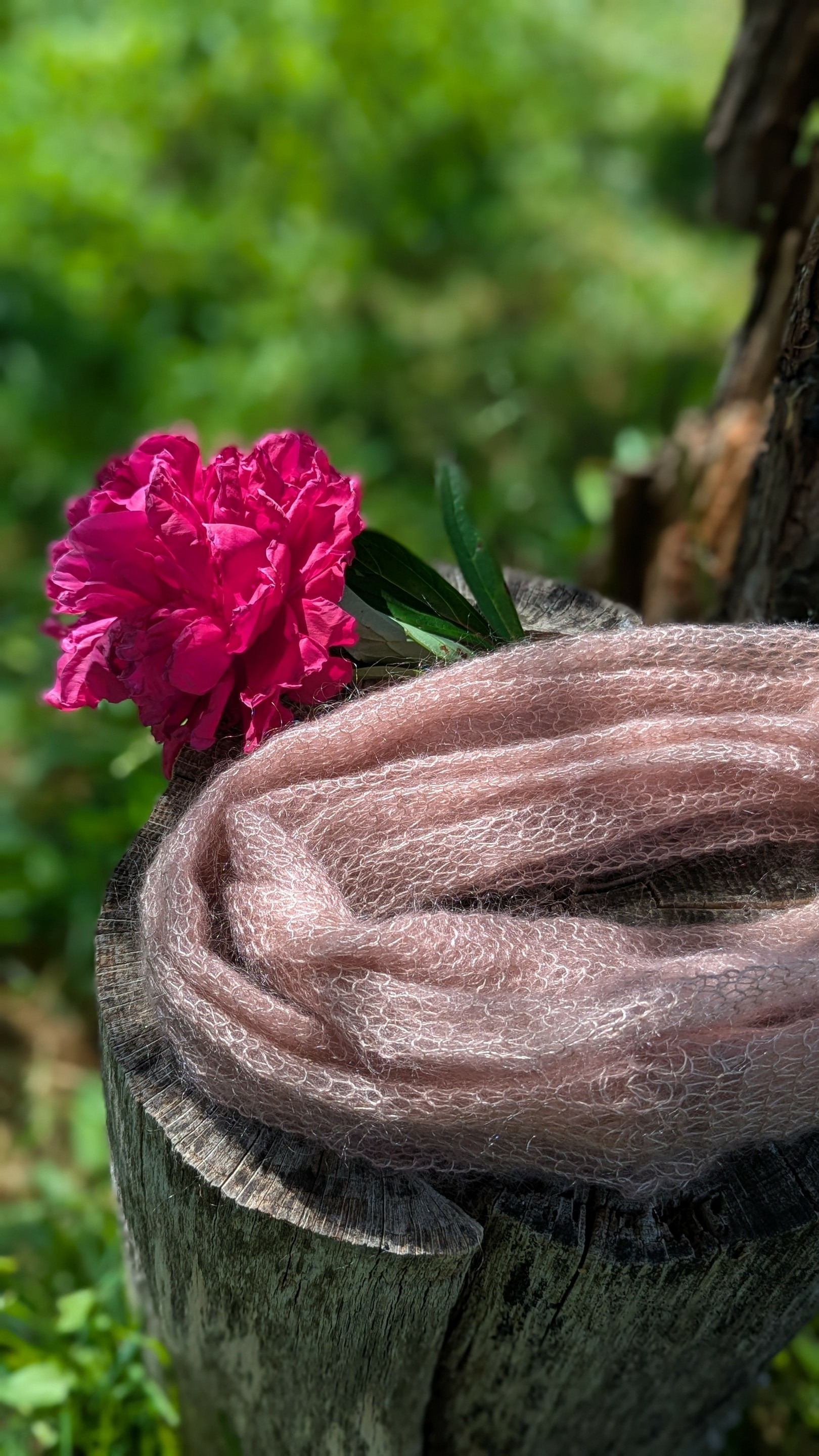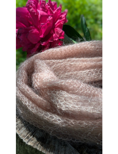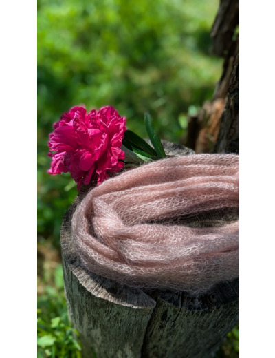 Tour de cou PLUME couleur rose poudré tricoté à la ferme.