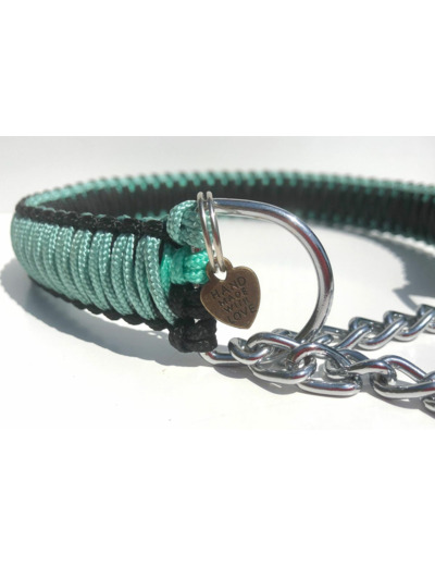 Collier triple tressage très résistant avec chaînette et décorations strass en forme de patte.