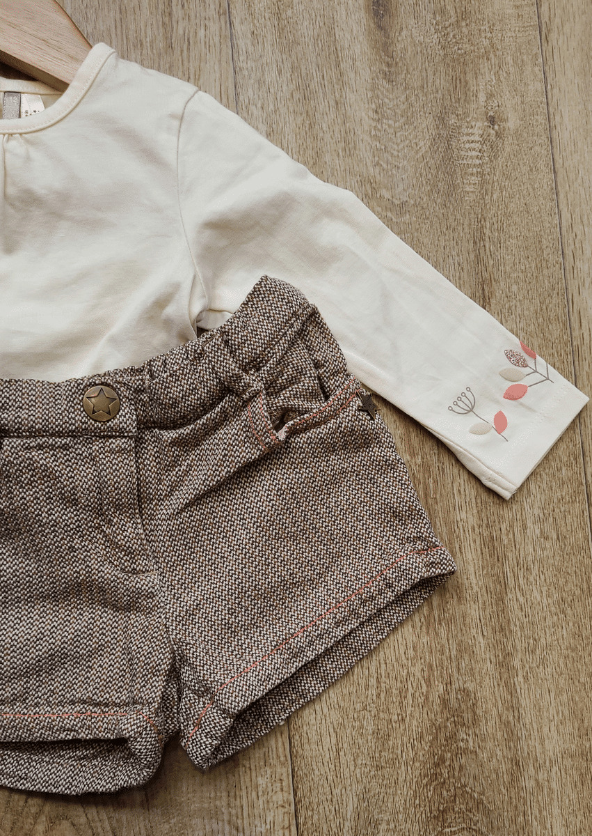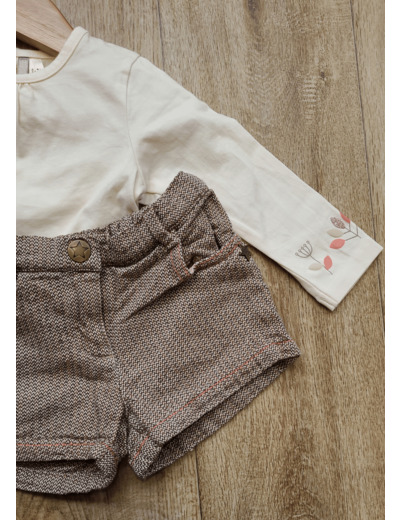 Composé d un tee shirt écru et d un short avec Taille ajustable