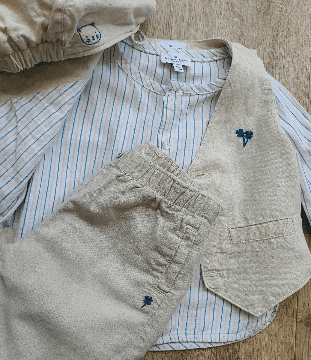 Composé d un pantalon et d un gilet 52%lin 48% coton