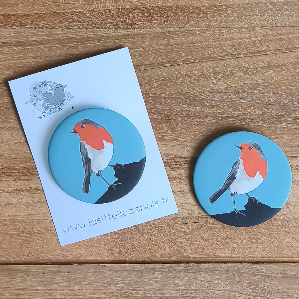 Badge rond diamètre 56 mm réalisé à partir de mes peintures.