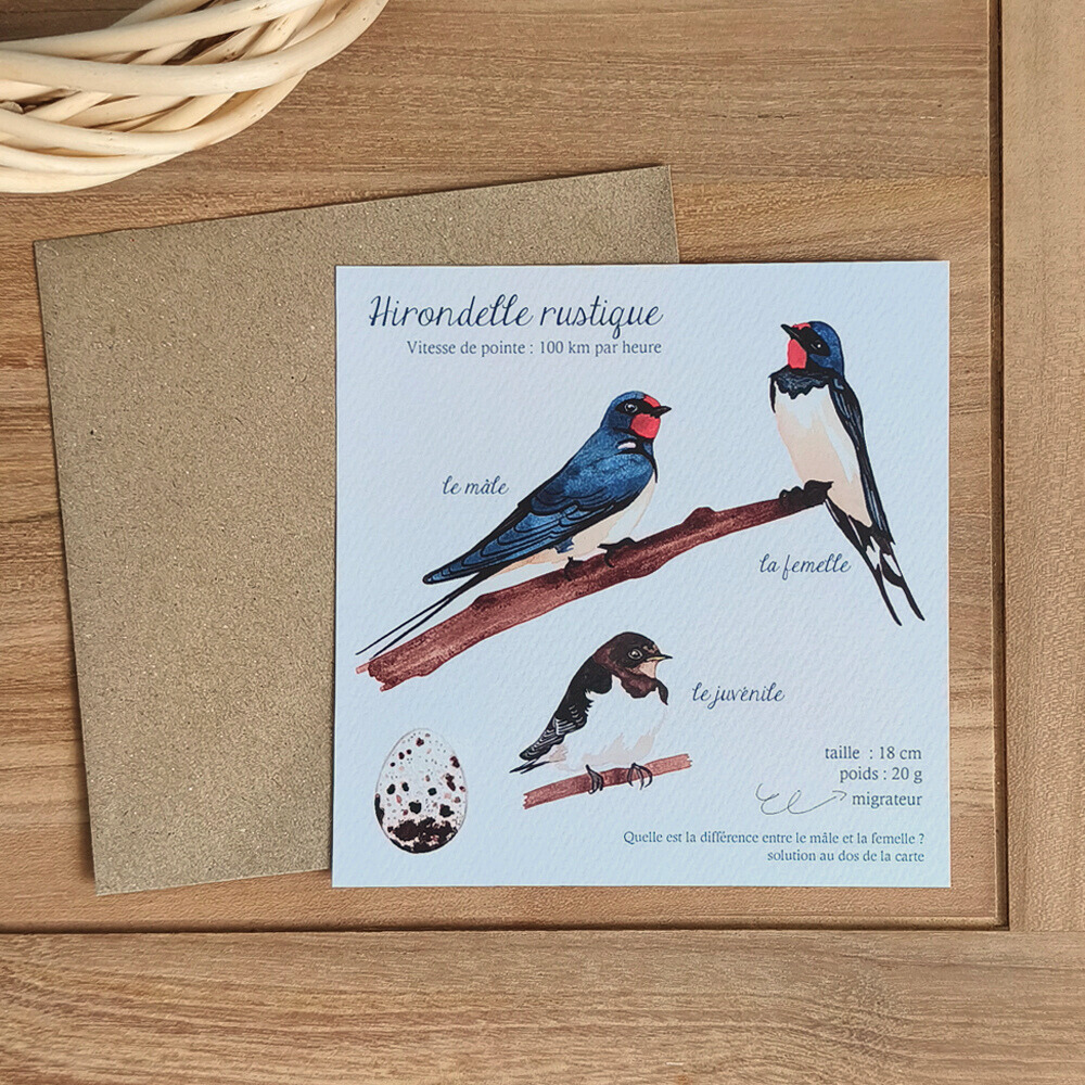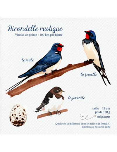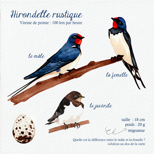 Voici une version ludique et esthétique pour répondre à la question. Chaque carte postale est créée à partir de mes aquarelles. Elles ont été réalisées d'après des recherches personnelles sur les diiférents oiseaux. Il s'agit aussi de ma mise en page. Bref, une création originale de A à Z.
