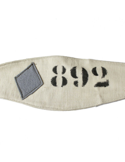Couleur écru (plus ou moins foncé selon le tissu) avec losange de compagnie cousu et marquage 892.