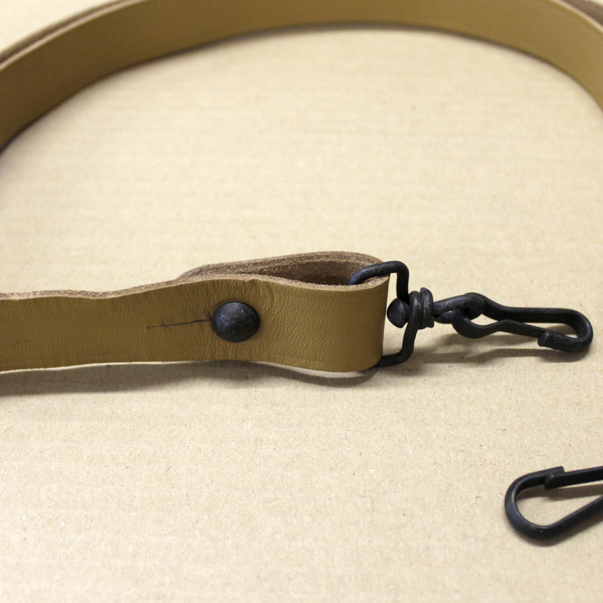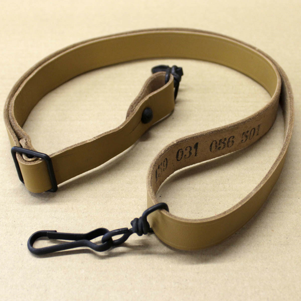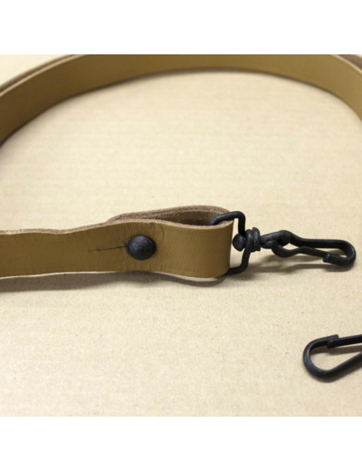 Le Pistolet Mitrailleur (PM) est en dotation dans l'armée française du début des années 50 jusqu'aux années 80. La bretelle est en cuir véritable auquel on a appliqué un tannage minéral au chrome.