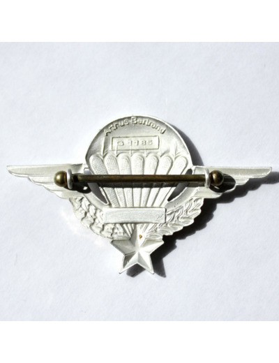 "Le parachute te porte, les ailes du grand Saint-Michel te supportent, l'étoile te guide, les lauriers te rappellent la gloire des anciens, la couronne de chêne, la force qui caractérise les parachutistes, mais la mort te guette, elle est représentée par le noir entre les suspentes."