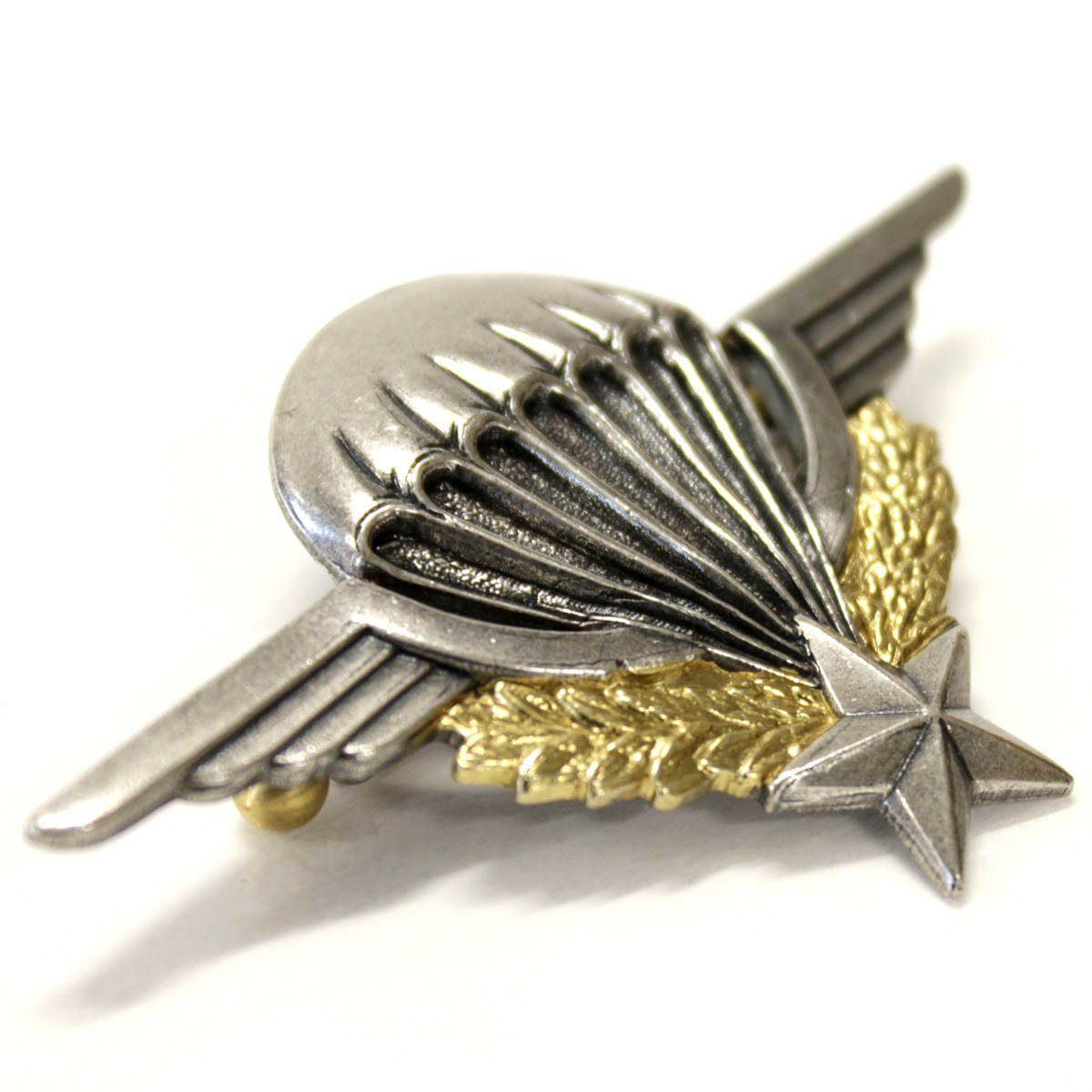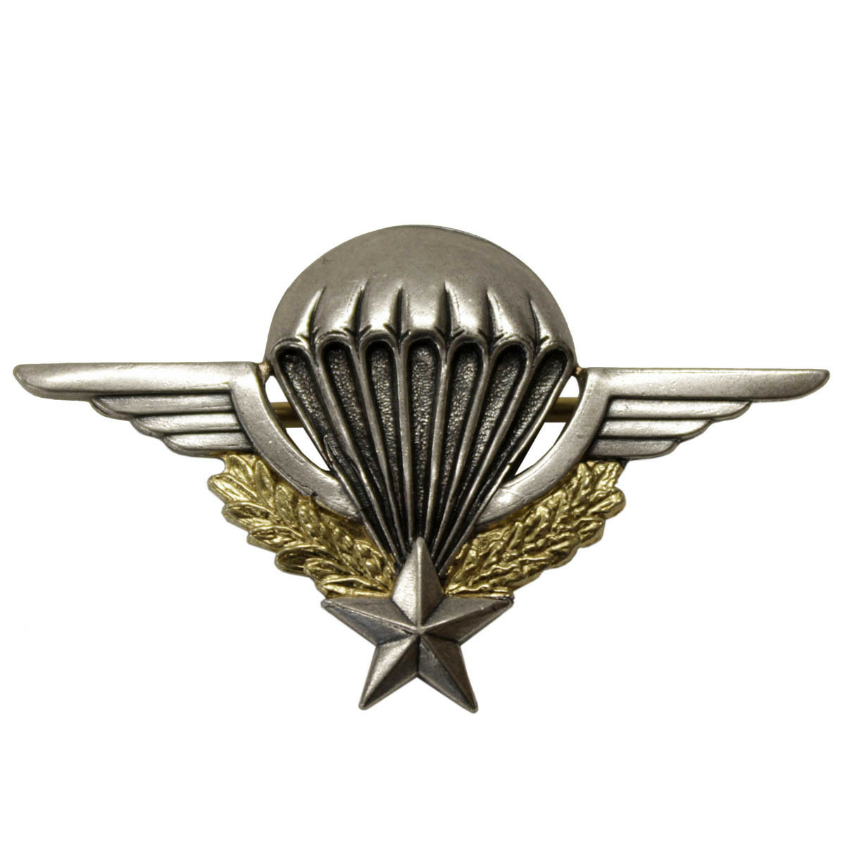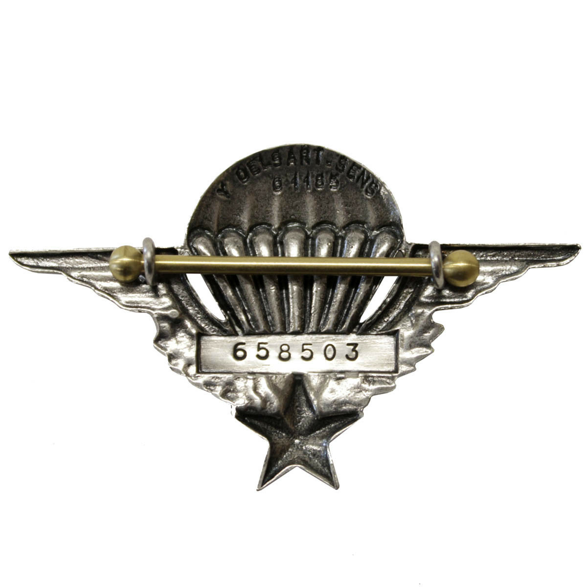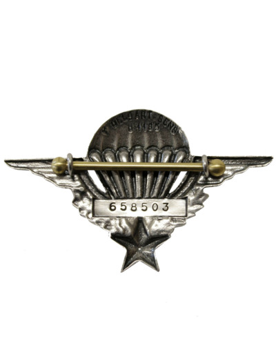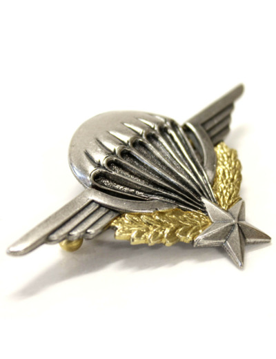 "Le parachute te porte, les ailes du grand Saint-Michel te supportent, l'étoile te guide, les lauriers te rappellent la gloire des anciens, la couronne de chêne, la force qui caractérise les parachutistes, mais la mort te guette, elle est représentée par le noir entre les suspentes."