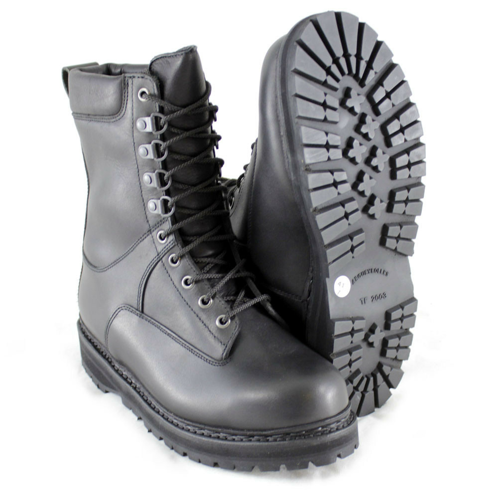 Chaussures en dotation dans l'armée de l'air dans les années 90 pour les Escadrons de Défense Sol-Air. Permet la station debout prolongée sur sol froid ou gelé grâce à une semelle doublée et une semelle de confort en feutrine.