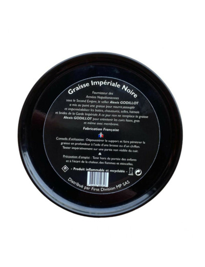 À base de véritable huile de pied de bœuf, d’huiles minérale et végétales ainsi que du suif de bœuf, de la cire d’abeille, de carnauba, et des cires minérales.